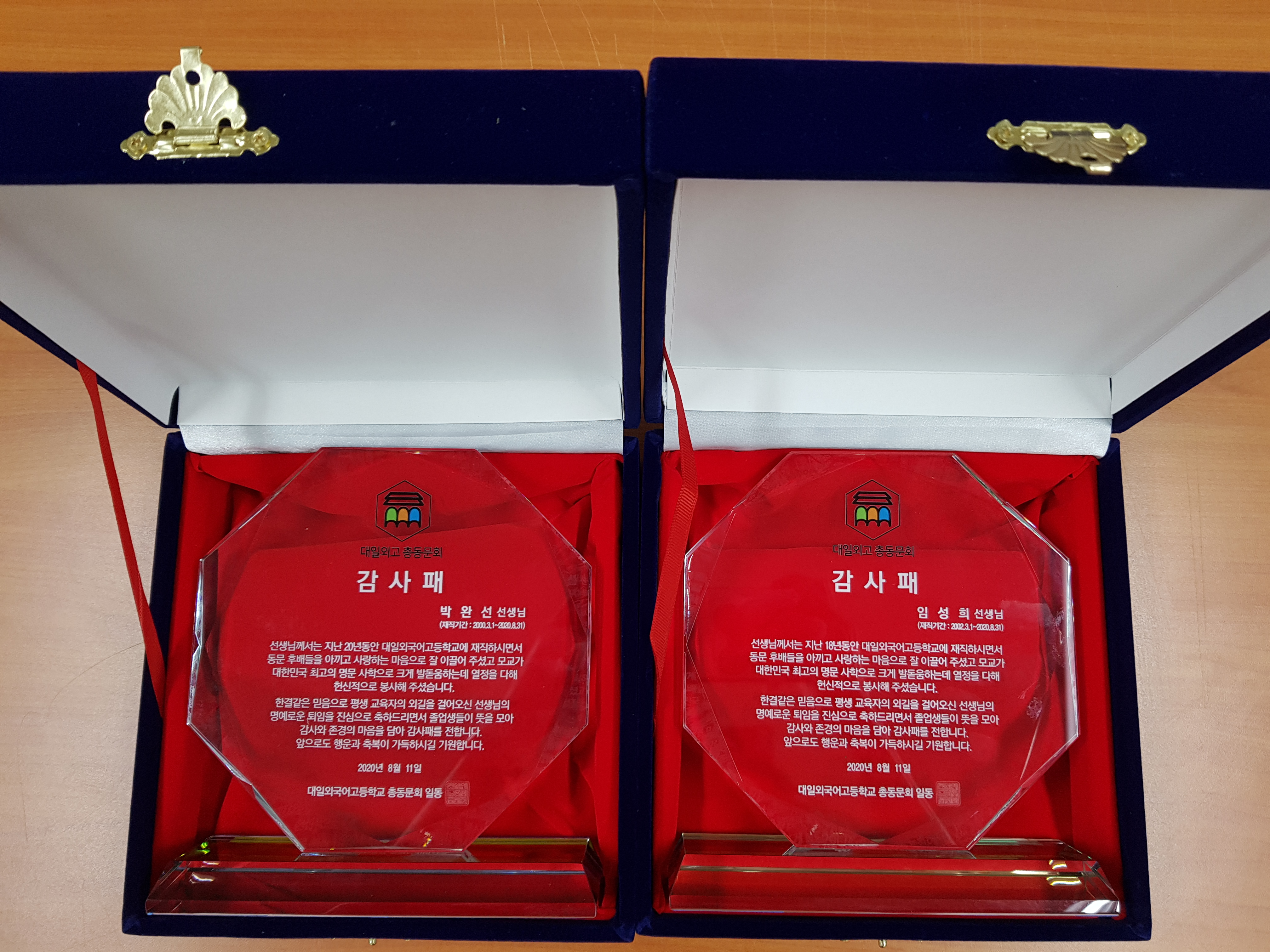 2020³â 8¿ù 31ÀÏ¿¡ Á¤³âÅðÀÓ ÇϽô ¹Ú¿Ï¼± ¼±»ý´Ô°ú ÀÓ¼ºÈñ ¼±»ý´Ô²²