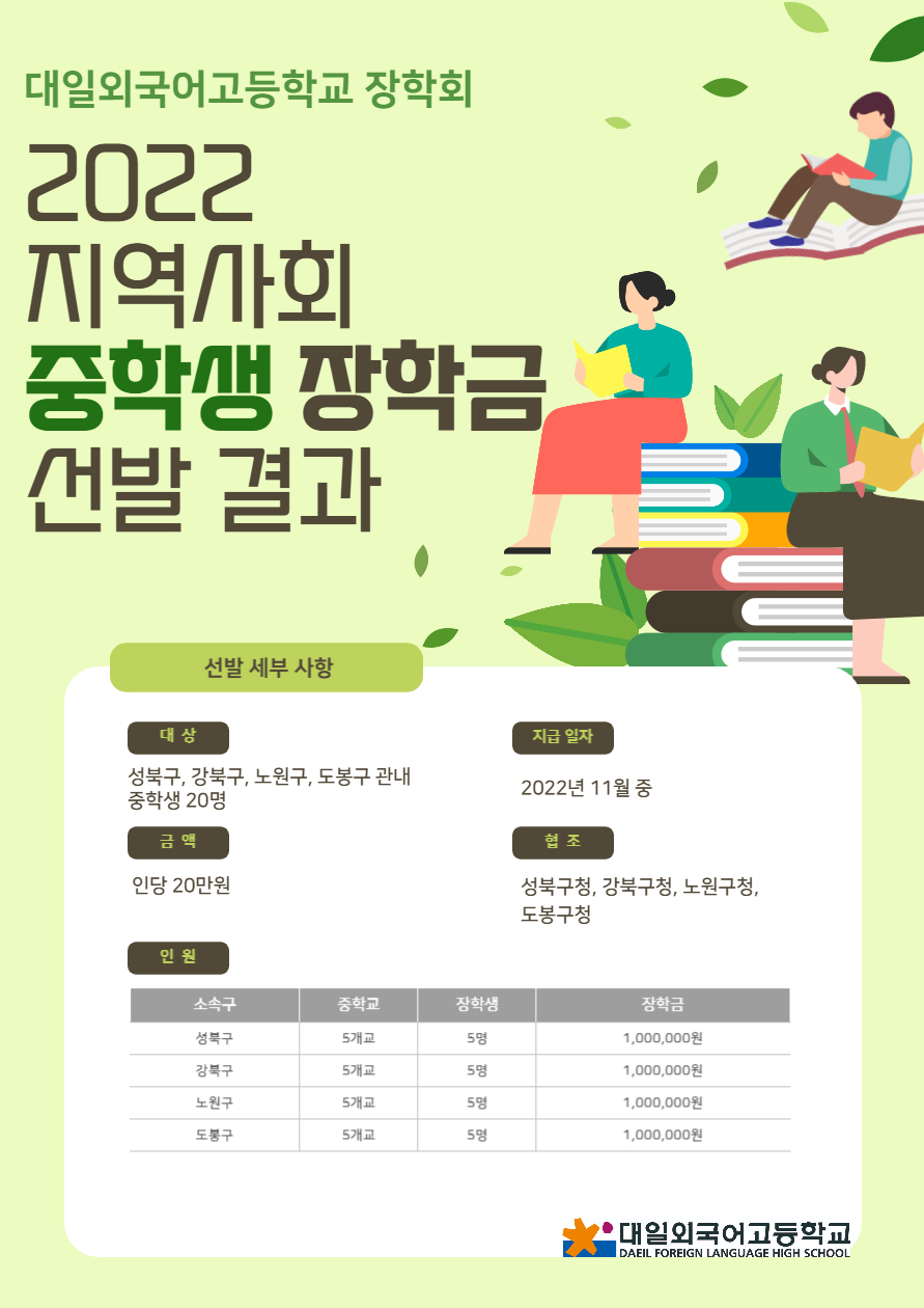 2022 ´ëÀϿܱ¹¾î°íµîÇб³ ÀåÇÐȸ Áö¿ª»çȸ ÁßÇлý ÀåÇÐ±Ý ¼±¹ß °á°ú