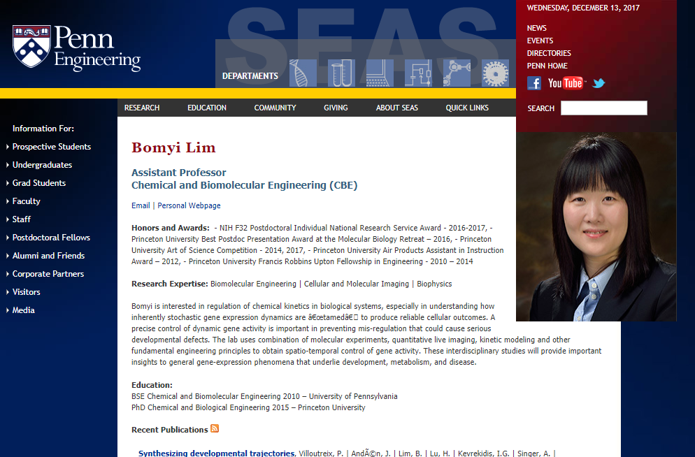 º»±³ Á¹¾÷»ý ÀÓº½ÀÌ(20±â, ±¹Á¦¾î°ú ½ºÆäÀξî Àü°ø) µ¿¹®ÀÌ ¹Ì±¹ Ivy League¿¡ ¼ÓÇØÀÖ´Â ´ëÇÐ Áß ÇϳªÀÎ University of Pennsylvania¿¡¼ Chemical and Biomolecular Engineering Àü°ø Assistant professor·Î ÀÓ¿ëµÇ¾ú½À´Ï´Ù.
