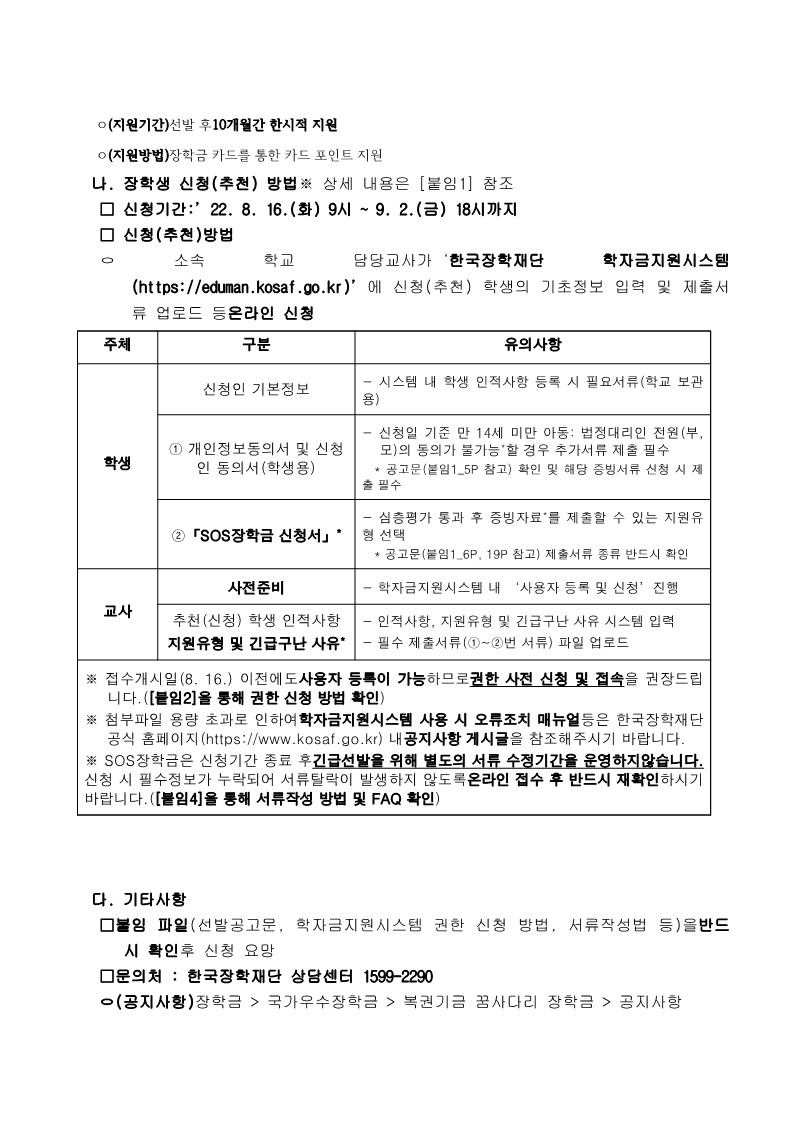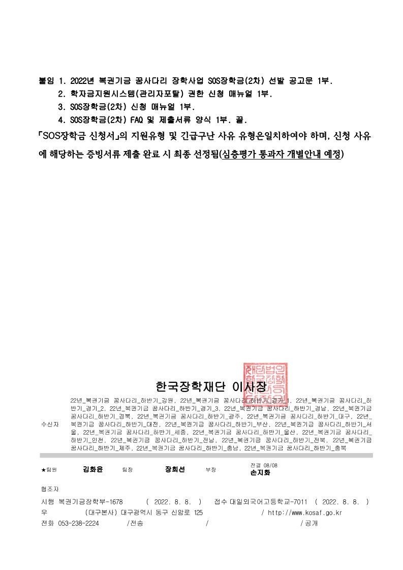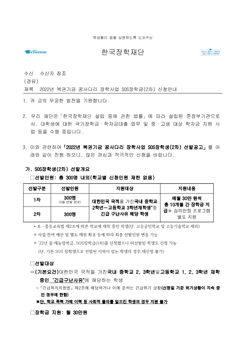 [Çѱ¹ÀåÇÐÀç´Ü] 2022³â º¹±Ç±â±Ý ²Þ»ç´Ù¸® ÀåÇлç¾÷ SOS ÀåÇбÝ