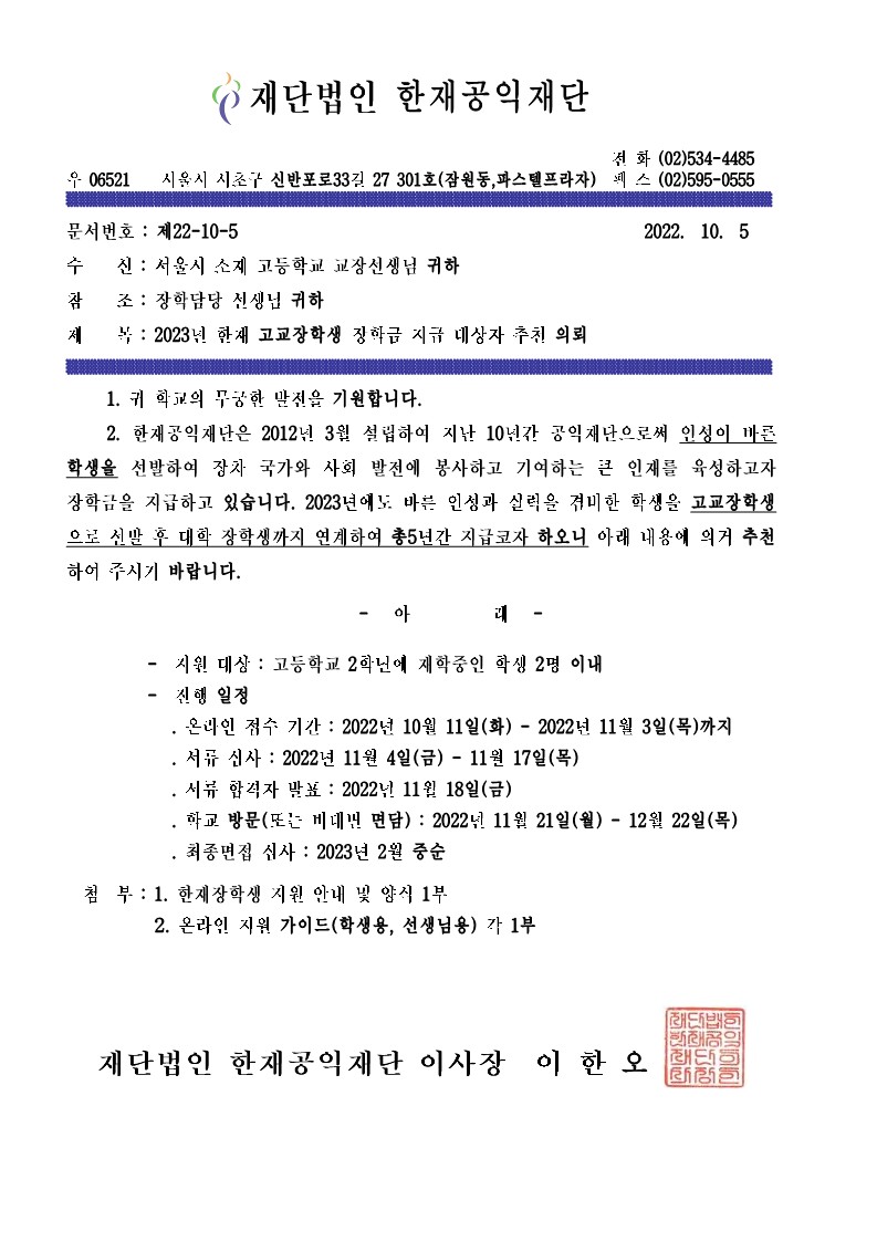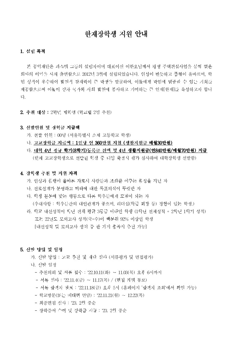 [ÇÑÀç°øÀÍÀç´Ü] 2023³â ÇÑÀç °í±³ÀåÇлý ÀåÇÐ±Ý ¾È³»
