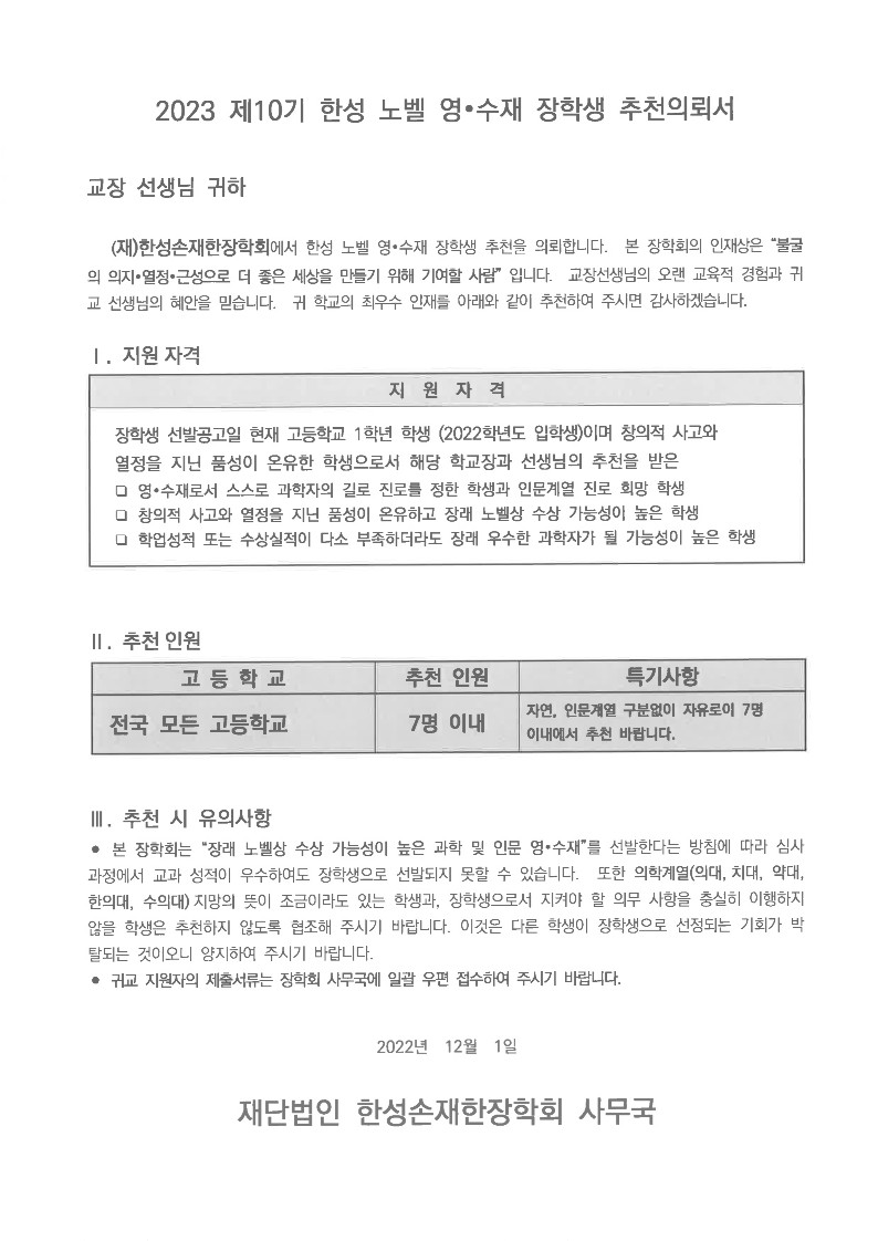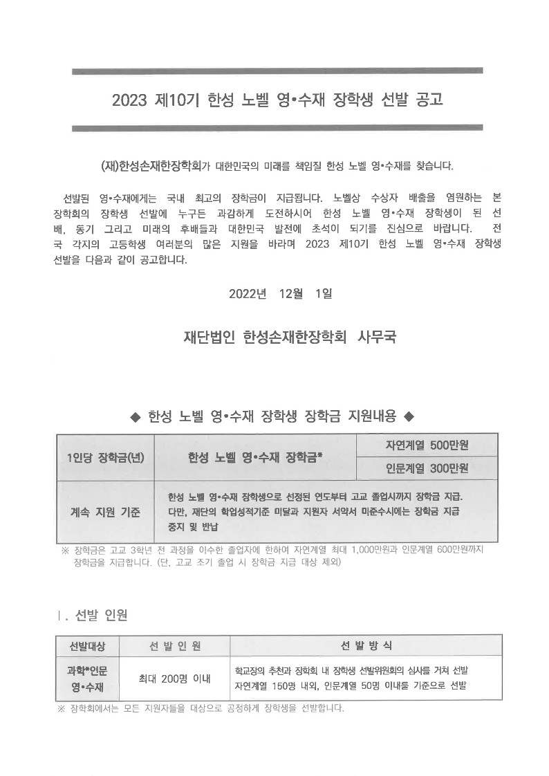 2023 Á¦10±â ÇѼº ³ëº§ ¿µ/¼öÀç ÀåÇлý ¼±¹ß