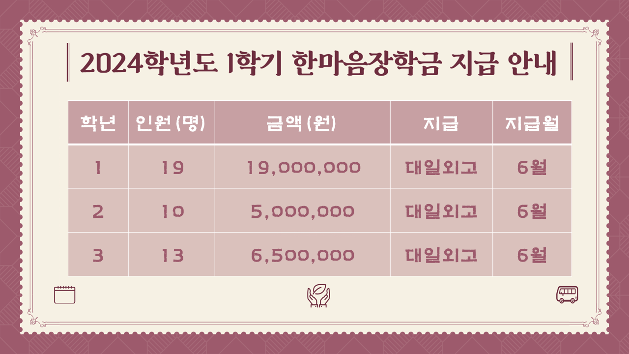 * 1Çб⠴ëÀÏ ÇѸ¶À½ ÀåÇбÝÀº 2024³â 6¿ù 18ÀÏ(È­)¿¡ Áö±ÞµÇ¾ú½À´Ï´Ù.