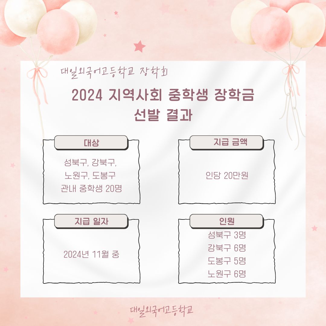 2024 ´ëÀϿܱ¹¾î°íµîÇб³ ÀåÇÐȸ Áö¿ª»çȸ ÁßÇлý ÀåÇÐ±Ý ¼±¹ß °á°ú