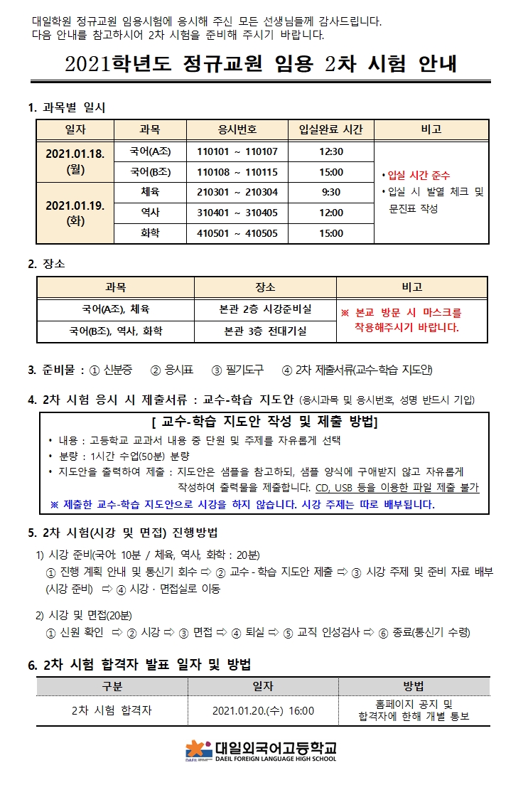 - [±³¿øÀÓ¿ë] 2021Çг⵵ Á¤±Ô±³¿ø(±¹¾î, ¿ª»ç, ÈÇÐ, üÀ°) ÀÓ¿ë 2Â÷ ½ÃÇè ÇÕ°ÝÀÚ ¸í´Ü ¹× 3Â÷ ½ÃÇè ¾È³»