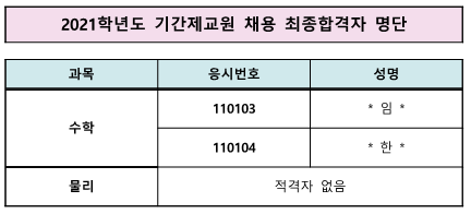 [±³¿øÃ¤¿ë] 2021Çг⵵ ±â°£Á¦±³¿ø(¼öÇÐ, ¹°¸®) ÃÖÁ¾ÇÕ°ÝÀÚ ¸í´Ü