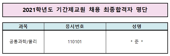 [±³¿øÃ¤¿ë] 2021Çг⵵ ±â°£Á¦±³¿ø(ÅëÇÕ°úÇÐ/¹°¸®) ÃÖÁ¾ÇÕ°ÝÀÚ ¸í´Ü
