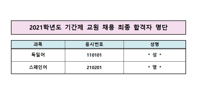 [±³¿øÃ¤¿ë] 2021Çг⵵ ±â°£Á¦ ±³¿ø(µ¶ÀϾî, ½ºÆäÀξî) ä¿ë ÃÖÁ¾ ÇÕ°ÝÀÚ ¸í´Ü