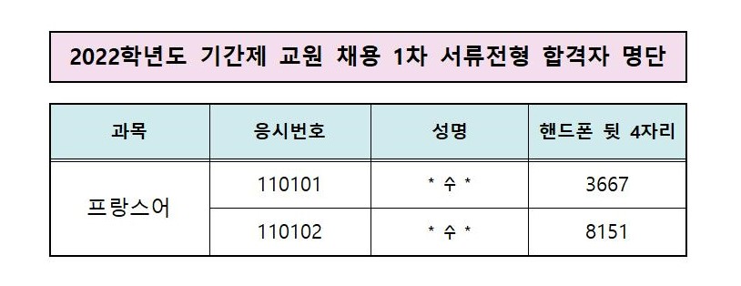 [±³¿øÃ¤¿ë] 2022Çг⵵ ±â°£Á¦ ±³¿ø(ÇÁ¶û½º¾î) ä¿ë 1Â÷ ¼­·ùÀüÇü ÇÕ°ÝÀÚ ¹× 2Â÷ ½ÃÇè ¾È³»