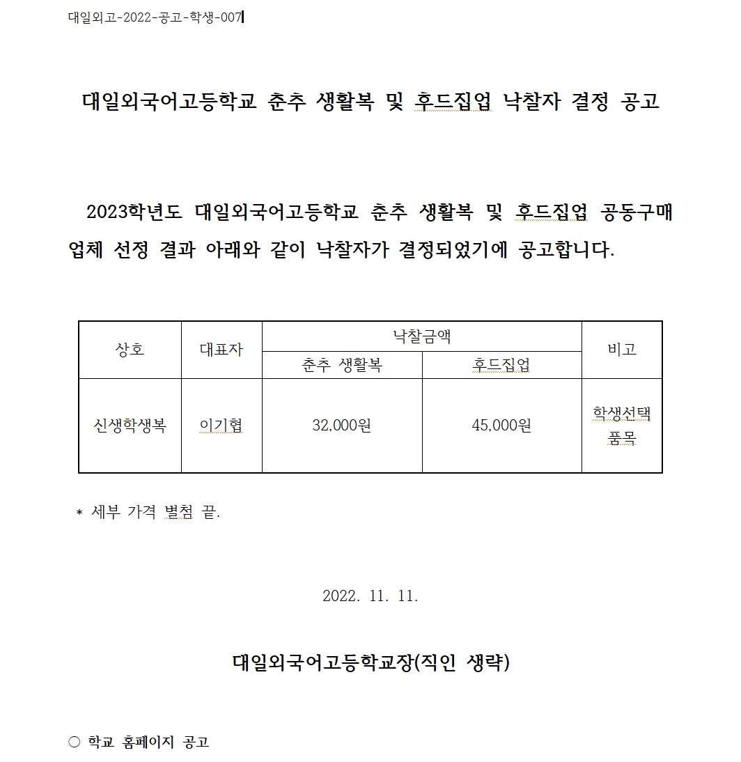 [°ø°í] 2023Çг⵵ ¼±Åñ³º¹ ÇÐºÎ¸ð°øµ¿±¸¸Å ³«ÂûÀÚ °áÁ¤ °ø°í