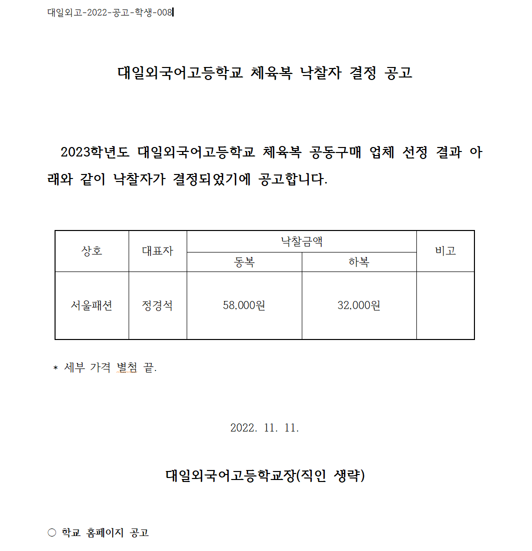 [°ø°í] 2023Çг⵵ üÀ°º¹ ÇÐºÎ¸ð°øµ¿±¸¸Å ³«ÂûÀÚ °áÁ¤ °ø°í