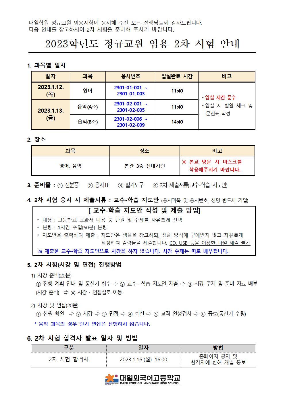 [±³¿øÀÓ¿ë] 2023Çг⵵ Á¤±Ô±³¿ø(À½¾Ç, ¿µ¾î) ÀÓ¿ë 2Â÷ ½ÃÇè ¾È³»