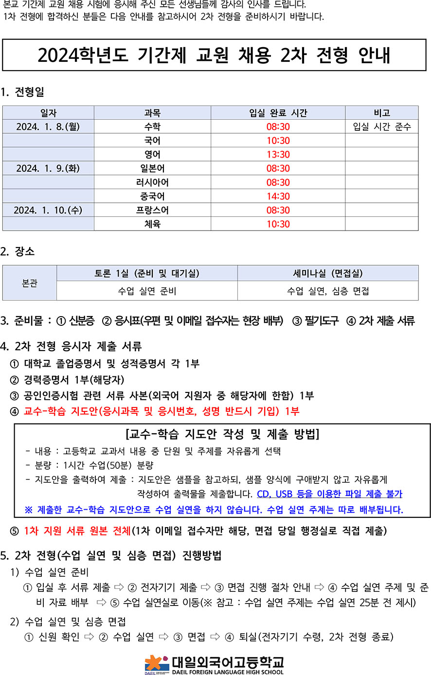 2024Çг⵵ ±â°£Á¦ ±³¿ø ä¿ë 2Â÷ÀüÇü ¾È³»