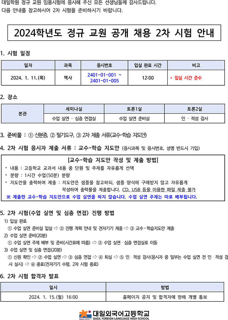 2024Çг⵵ Á¤±Ô±³¿ø °ø°³Ã¤¿ë 2Â÷½ÃÇè ¾È³»