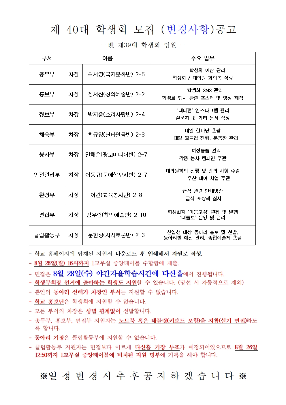 Á¦ 40´ë Çлýȸ ¸ðÁý °ø°í ÀÏÁ¤ º¯°æ ¾È³»