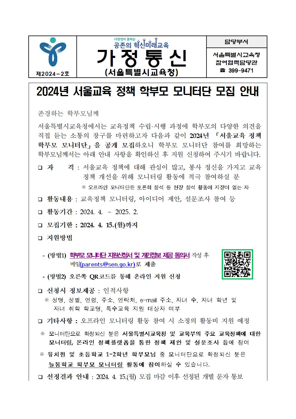 2024³â ¼­¿ï±³À° Á¤Ã¥ Çкθð ¸ð´ÏÅÍ´Ü ¸ðÁý ¾È³»