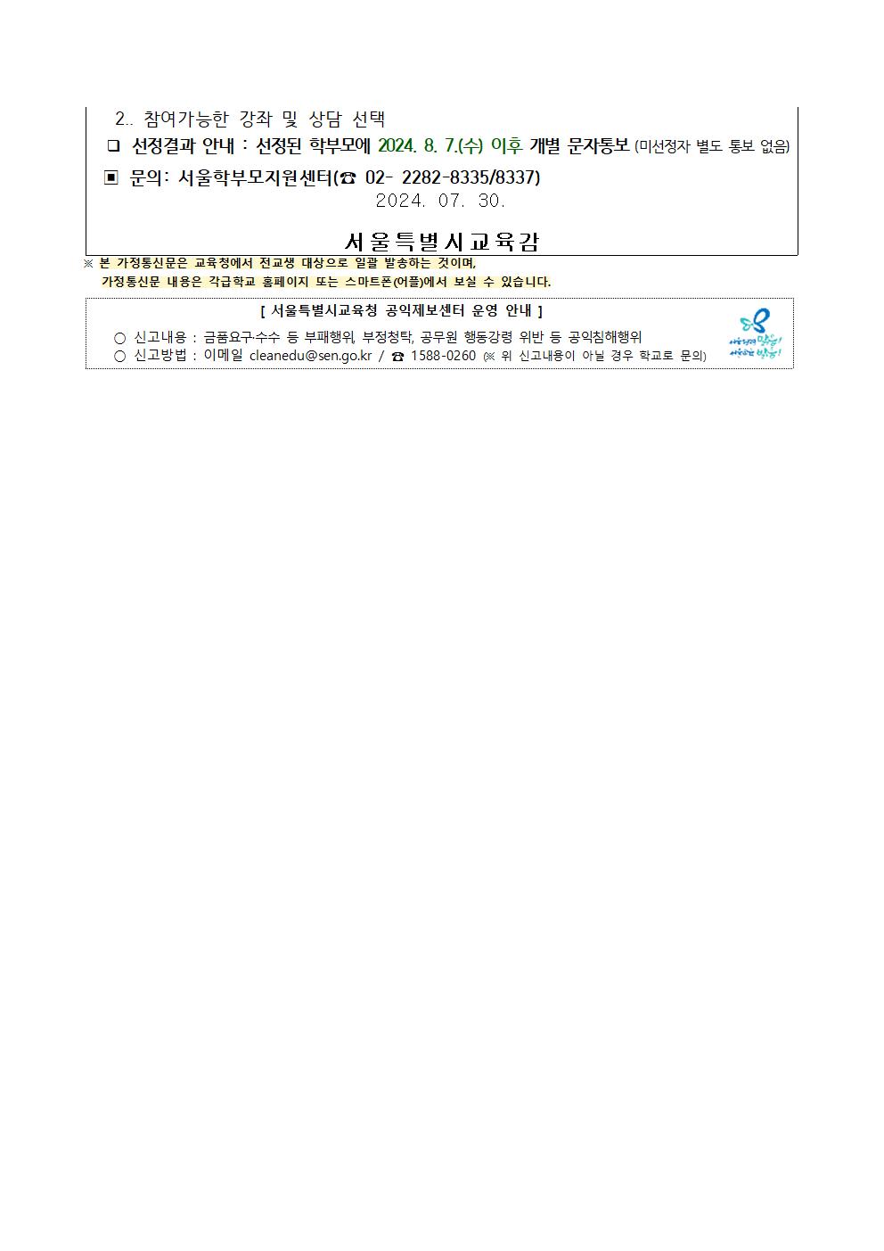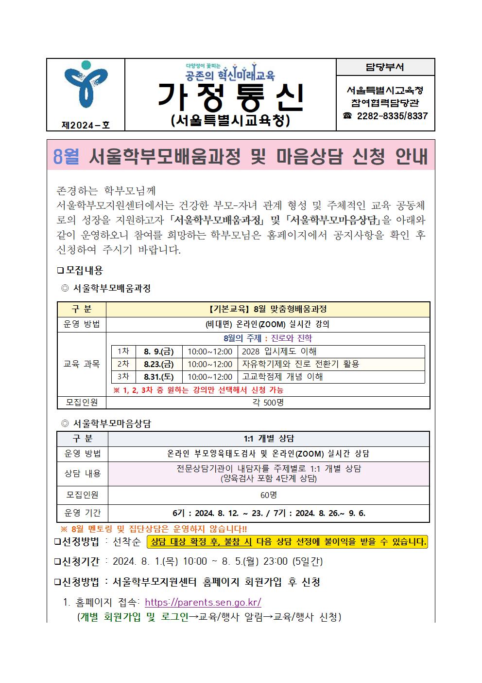 8¿ù ¼­¿ïÇкθð¹è¿ò°úÁ¤ ¹× ¸¶À½»ó´ã ½Åû ¾È³»
