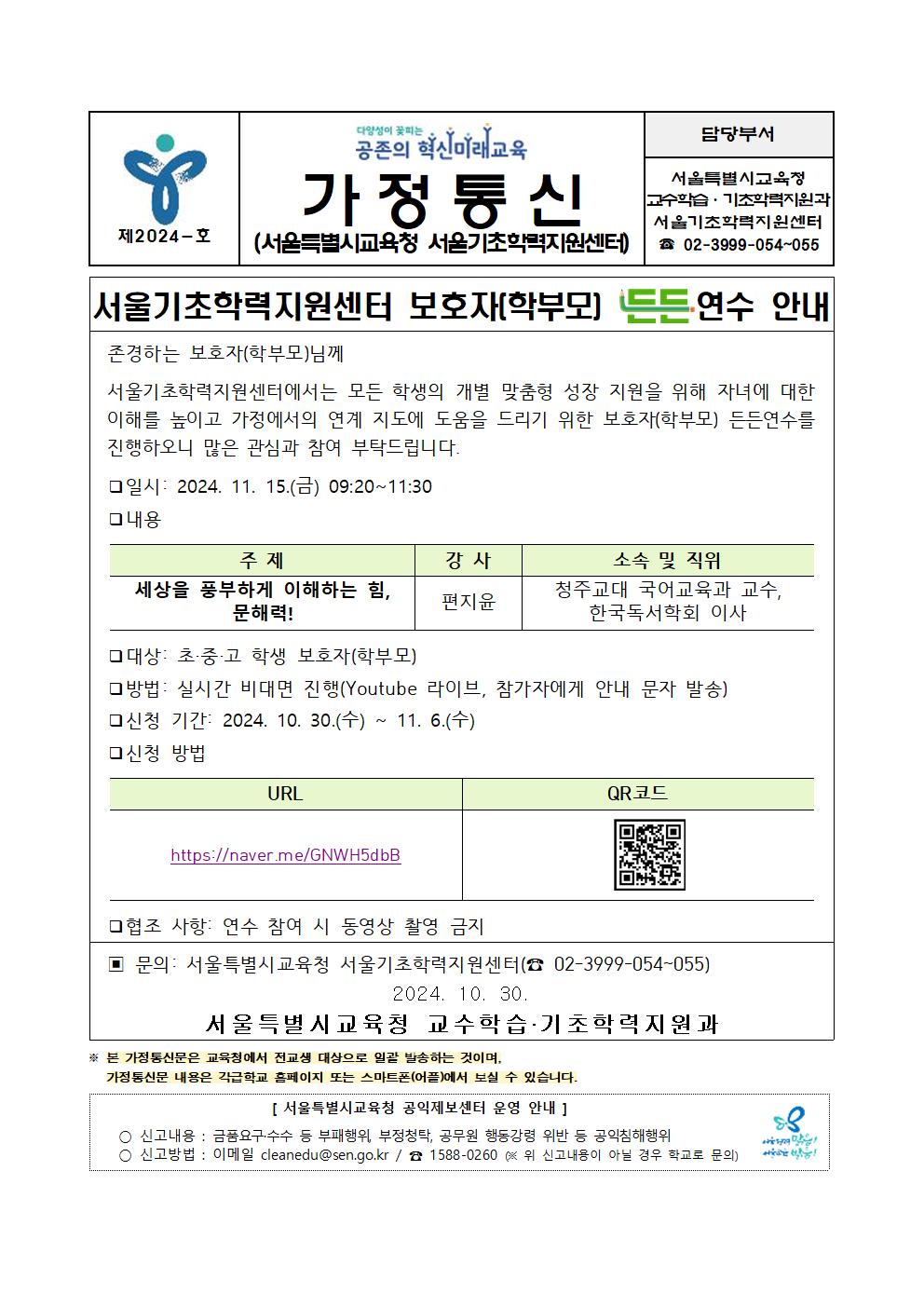 ¼­¿ï±âÃÊÇзÂÁö¿ø¼¾ÅÍ º¸È£ÀÚ(Çкθð) ¿¬¼ö ¾È³»