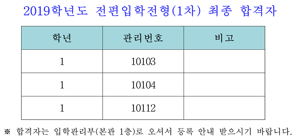2019Çг⵵ ÀüÆíÀÔÇÐÀüÇü(1Â÷) ÃÖÁ¾ ÇÕ°ÝÀÚ