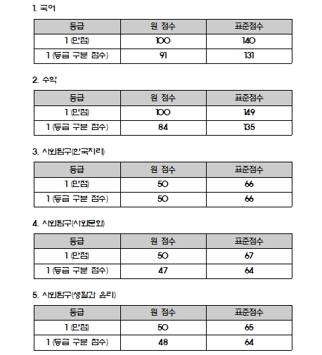 2020Çг⵵ ´ëÇмöÇдɷ½ÃÇè °ú¸ñº° ¸¸Á¡ ¹× µî±Þ±¸ºÐ Ç¥ÁØÁ¡¼ö