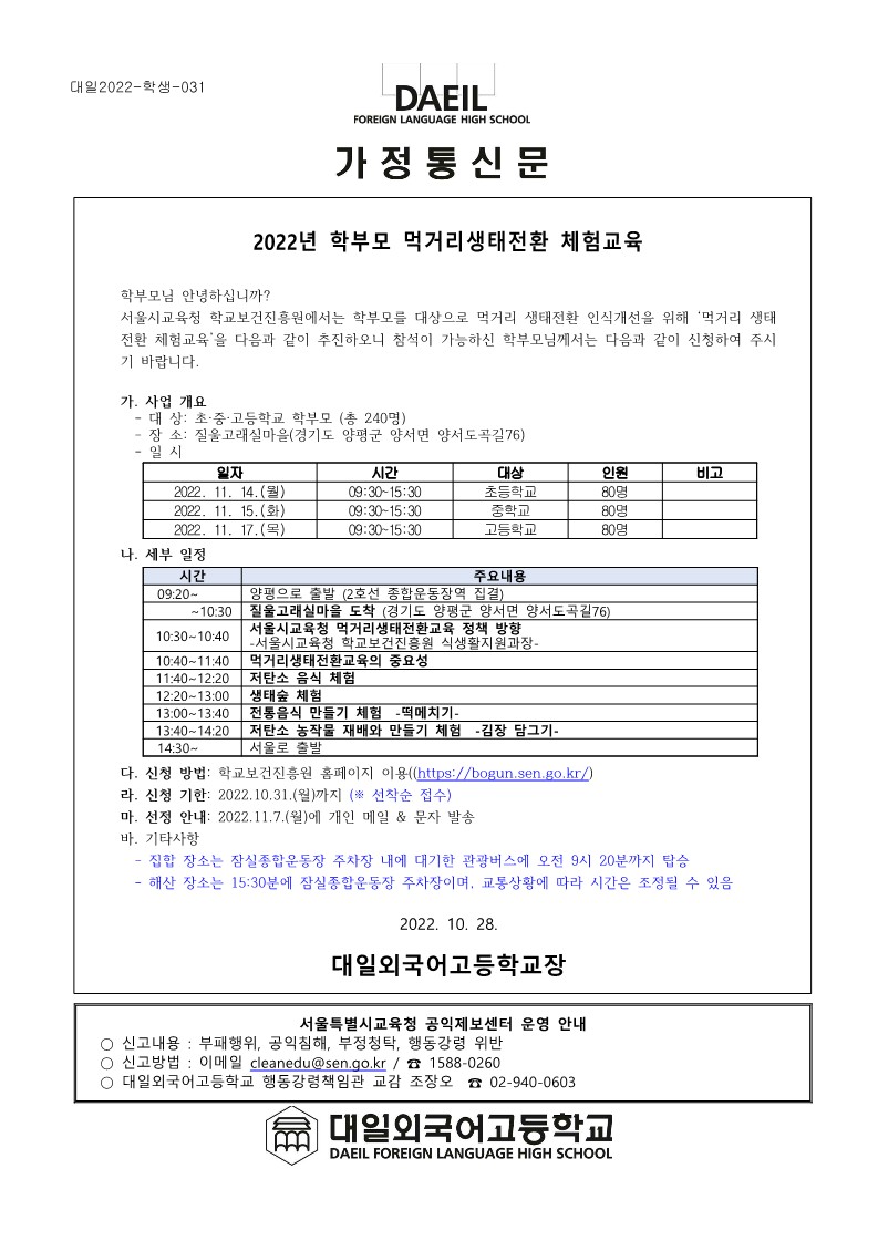 2022³â Çкθð ¸Ô°Å¸®»ýÅÂÀüȯ üÇè±³À° ¾È³»